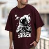 A detailed black-and-white illustration of an astronaut holding a camera, surrounded by planets, stars, and the moon.